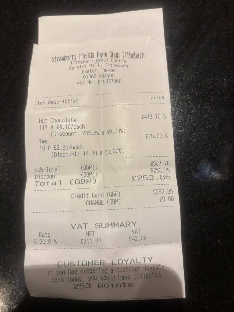 The town square was packed as 127 local residents picked up their free hot drink from Strawberry Fields cafe, funded by the generous donation from Broadclyst Parish Council, exchanging the voucher featured in the Winter edition of the Broadsheet (and delivered by us, the Tithebarn Residents Association volunteers!)